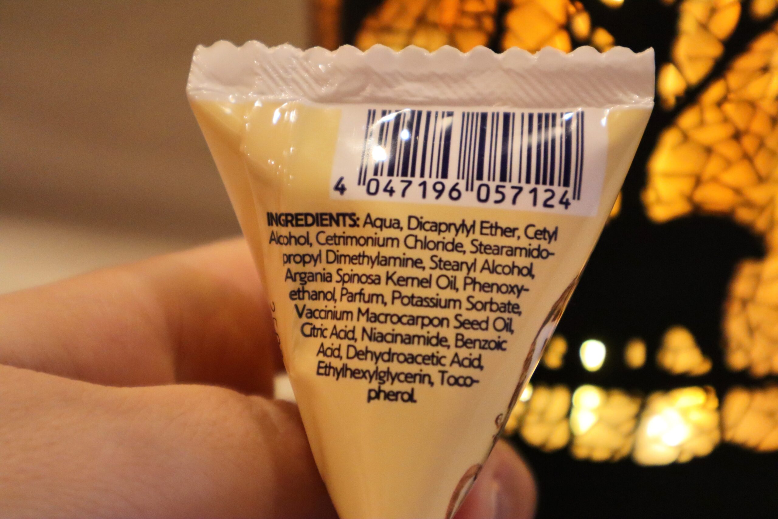 Po otwarciu (wystarczy zrobić dziurkę w rogu lub odciąć końcówkę nożyczkami) uderza nas bardzo przyjemny zapach. Jest to kompozycja słodko-owocowa, w której żurawina gra pierwsze skrzypce, przełamana ciepłą nutą arganu. Zapach nie jest chemiczny, co w tej półce cenowej jest miłym zaskoczeniem. Konsystencja produktu jest raczej lżejsza – nie spodziewajcie się tu gęstego, zbitego masła. To bardziej treściwy lotion do włosów, który bez problemu wydobywa się z saszetki i dobrze aplikuje na dłonie.